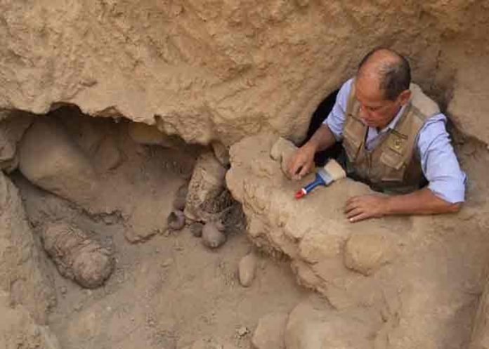 El descubrimiento ocurrió cerca de la cámara funeraria de unos tres metros de largo y a una profundidad de 1,40 metros; donde en noviembre se encontró la momia de quien ahora se presume sería una persona importante.