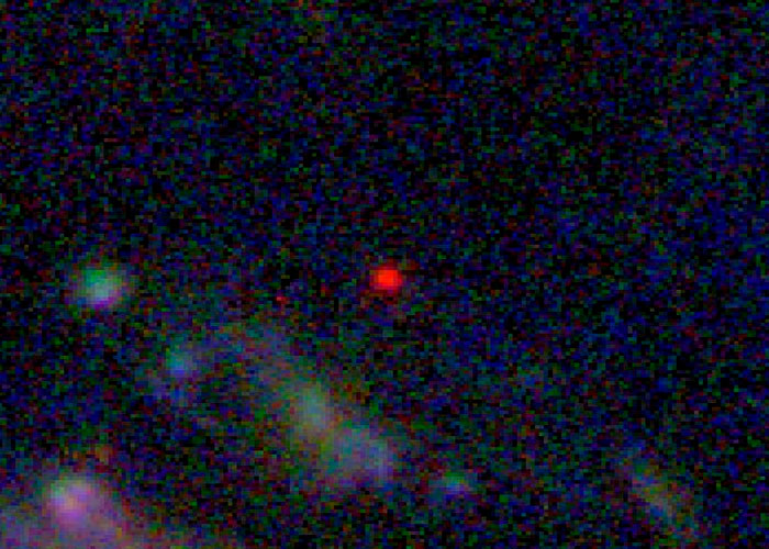 Además, Naidu y sus colegas, un equipo de 25 astrónomos de todo el mundo; basaron su descubrimiento en los datos del principal generador de imágenes infrarrojas del observatorio en órbita. Al convertir el infrarrojo al espectro visible, la galaxia se muestra como una mancha roja, con un tipo de punto blanco en el centro.