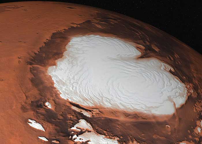 Sin embargo, hasta hace poco se pensaba que los casquetes polares de Marte estaban completamente congelados hasta sus lechos; en función de las condiciones del duro clima marciano.