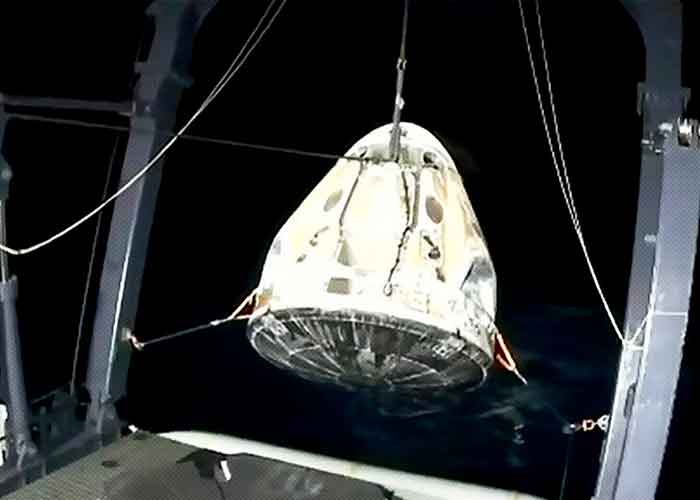 La cápsula amerizó a las 02H56 (06H56 GMT) en el Golfo de México frente a las costas de Panamá City, en el sureste de Estados Unidos; después de un vuelo de seis horas y media desde la Estación Espacial Internacional (ISS).