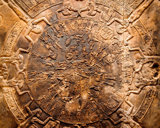 Los símbolos del zodíaco, similares a los de la astrología moderna, se remontan a la época de los Ptolomeos y tienen su origen en Babilonia. Además de estos signos, también se encontraron representaciones de constelaciones y planetas como Marte, Júpiter y Saturno.