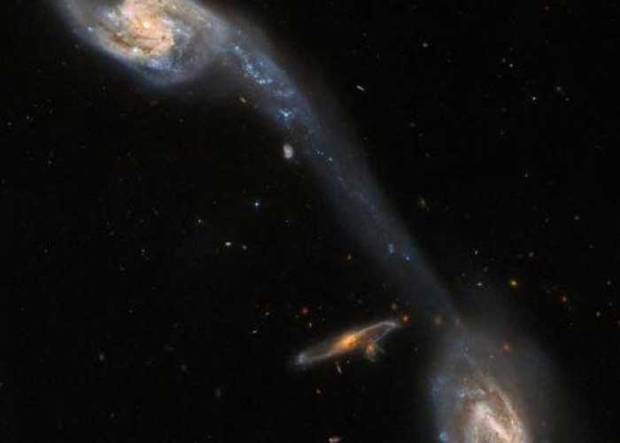 Y es que Hubble ha capturado una imagen de una especie de puente intergaláctico que une a dos de las galaxias de la formación Arp 248; también conocida como Triplete de Wild.