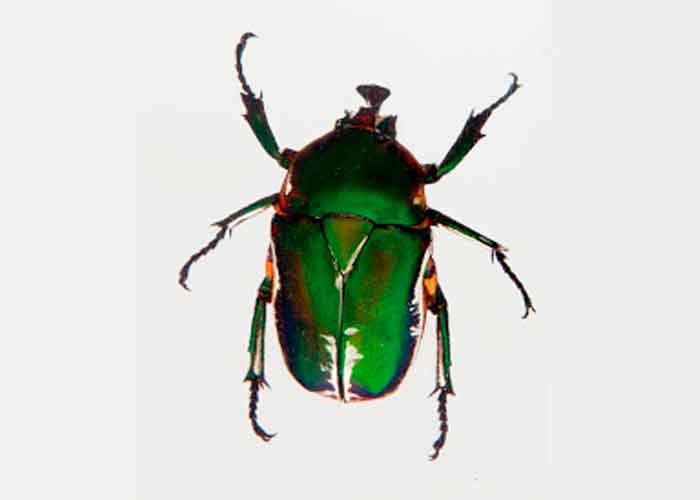 Este escarabajo mide entre 7 a 8 milímetros y se diferencia de los otros de su especie por la coloración «blanca arenosa» que presenta en su cuerpo y el color «verde bronce» en la cabeza, según explicó Amaya.
