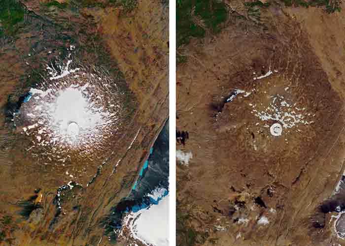 En 2014, Islandia registró la primera desaparición de uno de sus glaciares, el Ok, ex-Okjökull («glaciar del Ok») bajo el efecto del calentamiento.