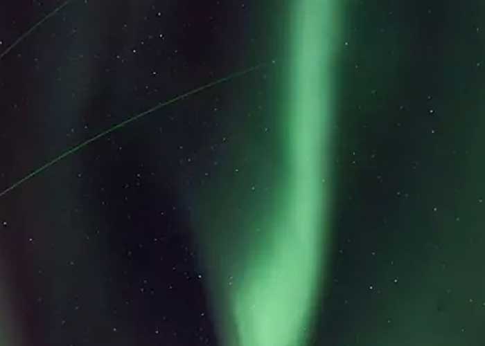 Desde el suelo, los observadores ven cintas efervescentes de color rubí y esmeralda: la aurora boreal y la austral, o luces del norte y del sur.
