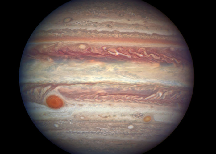 Por su parte, en esta ocasión el protagonista es el planeta Júpiter, de este planeta el telescopio mostró maravillosas imágenes. En concreto, se han publicado dos fotos nuevas de Júpiter, en las que además aparecen sus lunas Europa, Tebas y Metis. Hay dos imágenes: una muestra las longitudes de ondas cortas (izquierda) y otra las longitudes de ondas largas (derecha).