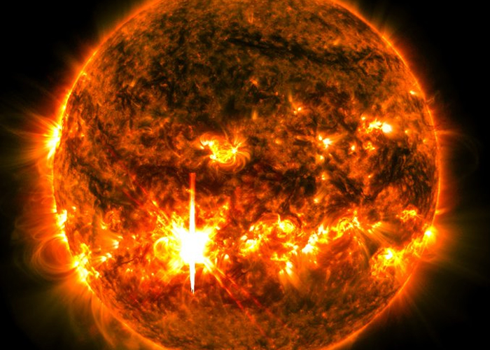 El Observatorio de Dinámica Solar de la NASA compartió la imagen de una «fuerte erupción solar» que alcanzó su punto máximo el martes.