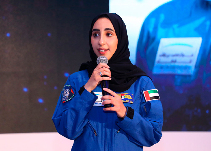Nacida en 1993 en Sarja, Emiratos Árabes Unidos, cuenta que en la escuela, durante una clase donde se hablaba del espacio, la maestra simuló un viaje a la Luna.