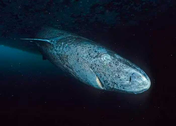 El tiburón de Groenlandia, famoso por vivir mucho tiempo, generalmente nada en aguas frías; pero en esta ocasión lo vimos en un lugar inusual a miles de kilómetros de su hábitat normal.