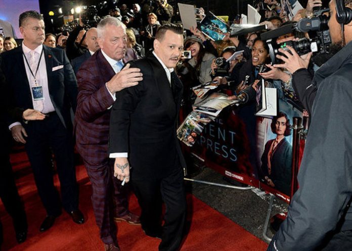 'Asesinato en el Orient Express' contiene un reparto muy coral. Sin embargo, uno de sus intérpretes que está dando la nota por encima de todos: Johnny Depp. La semana pasada tuvo lugar la premiere de la película en Londres, y fue el actor de 54 años quien se llevó después casi todos los titulares. ¿El atuendo? ¿Las declaraciones? Lo que atrajo todas la atención fue el comportamiento de la estrella de Hollywood. El que es Jack Sparrow en la gran pantalla paseó por la alfombra roja con evidentes muestras de embriaguez. Mientras sus compañeros de la película le esperaban, su guardaespaldas le guió todo el rato por el recorrido y sin soltarle. Los andares eran lo que delataba a Depp y daba señas de estar bebido.