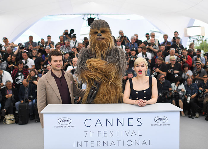 "Solo: A Star Wars Story" fue proyectada fuera de competición, pero no es el primer filme de la saga ideada por George Lucas que desembarca en el festival: tanto "Star Wars: Episode II – Attack of the Clones" (2002) como "Star Wars: Episode III – Revenge of the Sith" (2005) se exhibieron en la Croisette.