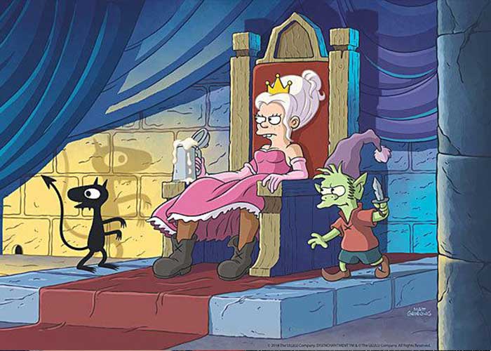 La primera serie animada para Netflix está a cargo del padre de Los Simpsons y Futurama, la cual será estrenada el próximo 17 de agosto para todos los suscriptores de la plataforma. En español la conoceremos como (Des)encanto y tendrá en esta primera temporada, 10 episodios, señalo Hipertextual.