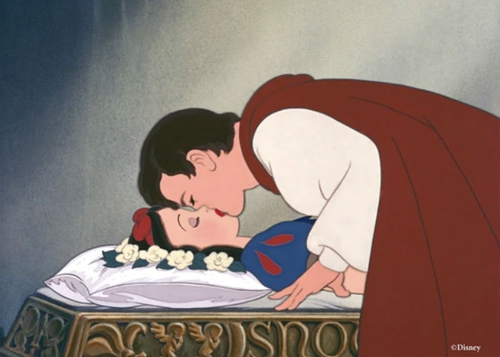 Blancanieves queda dormida durante un año, hasta que un príncipe que se enamoró de ella la encuentra y la besa.
