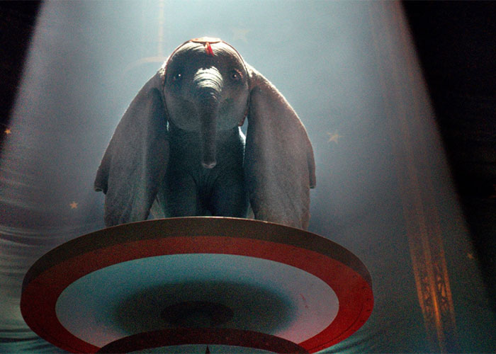Según Sin Embargo, la imagen central del póster es el pequeño elefante volando con sus grandes orejas ante las mirada de varios de los personajes interpretados por los actores Eva Green, Danny DeVito, Colin Farrell, Michael keaton, Sharon Rooney, entre otros.