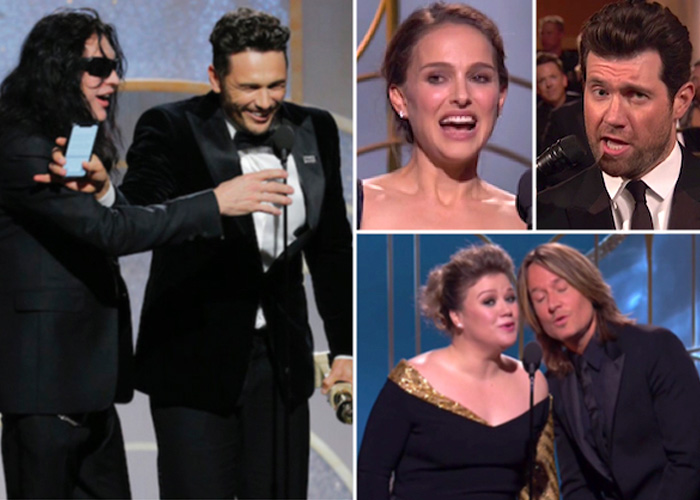 Cuando J-Lo le preguntó al actor si quería que abriera el sobre con el nombre del ganador, ya que tenía "las uñas" para ello, éste le contestó: "También tienes los globos".