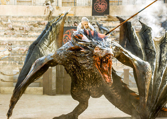 En esta ocasión el nuevo póster oficial de la serie viene con un aparente spoiler para los más acérrimos fans al hacer de la conocida forma del deseado Trono de Hierro la parte superior de la cabeza de uno de los dragones de Daenerys (Emilia Clarke). Concretamente parece tratarse de Drogon, el dragón negro que la salva de ser asesinada en las arenas de combate durante la quinta temporada.