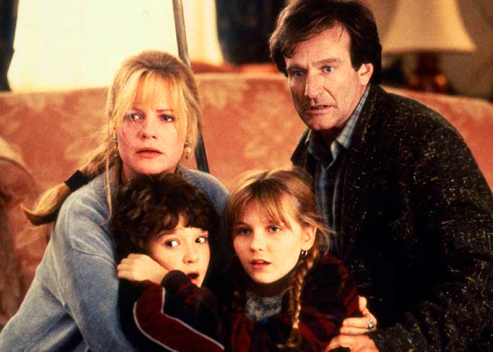 La película tuvo como protagonistas al siempre recordado Robin Williams (Alan Parrish), Bonnie Hunt (Sarah Wittlee); Kirsten Dunst (Judy Shepherd) y Bradley Pierce (Peter Shepherd).