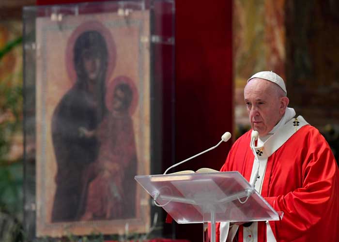 "Hoy, en el drama de la pandemia, ante tantas certezas que se desmoronan, frente a tantas expectativas traicionadas, con el sentimiento de abandono que nos oprime el corazón, Jesús nos dice a cada uno: 'Ánimo, abre el corazón a mi amor. Sentirás el consuelo de Dios, que te sostiene', dijo el papa argentino en su homilía.