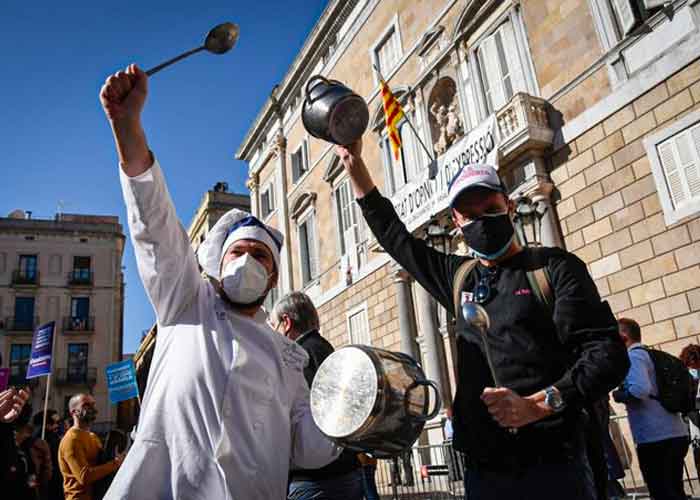 Barcelona: Cocineros se manifiestan contra el cierre de bares y restaurantes