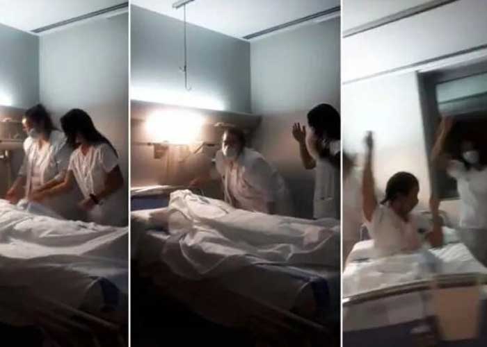 El hospital Joan XXIII de Tarragona, España, donde fue hecho el video, dijo que cree que el material es inapropiado y que investiga a las enfermeras.