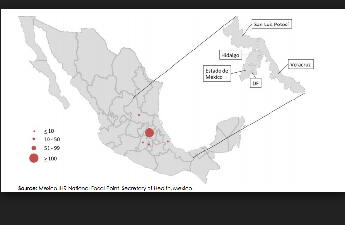 La Secretaria de Salud de México confirmó 44 casos positivos de cólera y 33 por corroborar, de las cuales 10 personas están hospitalizadas en el Estado de Hidalgo.