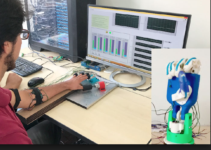 Durante el proceso de rehabilitación, una computadora recibe de la prótesis una señal generada por las contracciones musculares del muñón, posteriormente las procesa y despliega en una interfaz gráfica el movimiento de la extremidad.