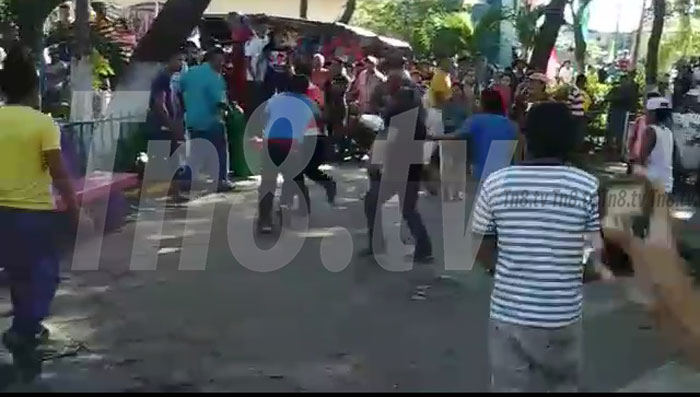 Al calor de los tragos y olvidando la religiosidad aparentes grupos juveniles al concluir el toro venado del pueblo en Masaya terminan convirtiendo la plaza San Jerónimo en un ring de boxeo.