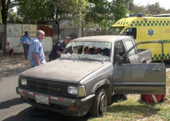 Tremendo impacto se llevaron los ocupantes de una camioneta que era abordada por la pareja Jaime Baltodano y María Antonia Palacios. Esta última fue quien recibió todo el impacto del autobús que cubre la ruta 195 conducida por Juan José Bustos en el sector del Estadio Nacional de Béisbol en Managua.