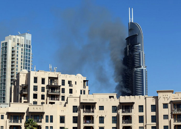 Los fuegos artificiales de Año Nuevo en el cercano Burj Khalifa, el edificio más alto del mundo, son uno de los ritos más famosos de Dubái y miles de espectadores llegaron el jueves una vez más a ver el espectáculo, la mayoría de los cuales fueron evacuados tras el incendio.