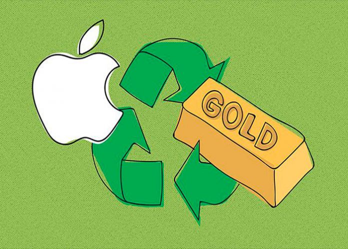 De los cerca de 40 millones de kilos de desechos electrónicos de sus programas de reciclaje, Apple dijo que 27 millones son materiales reusables. El oro representa una cantidad relativamente trivial. Pero ya que el oro actualmente se cotiza a más de 1.200 dólares la onza troy (31 gramos), es uno de los materiales más valiosos que sacan de los aparatos viejos.