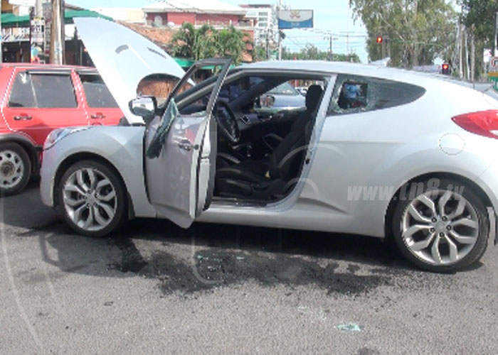 Un accidente de tránsito provocó que el conductor de un vehículo marca Hyundai terminara casi asfixiado al momento de impactar contra una camioneta Toyota Hilux, hecho ocurrido en los alrededores de los semáforos del Hotel Seminole, en Managua.