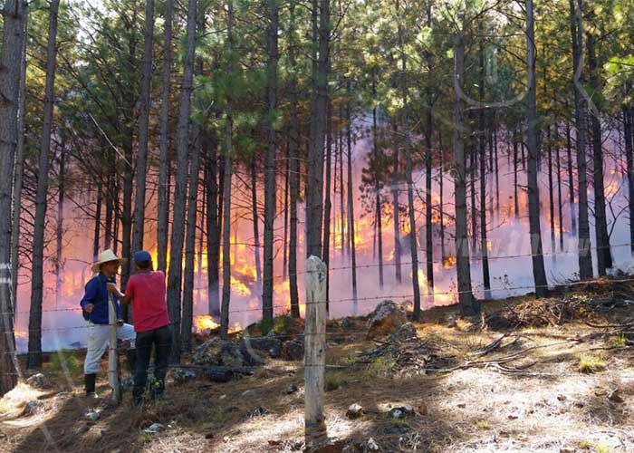 Sólo árboles de Pino está arrasando un mega incendio donde los comunitarios organizados sofocan las llamas que además amenazan a dos comunidades de la localidad en San Nicolás, departamento de Estelí.