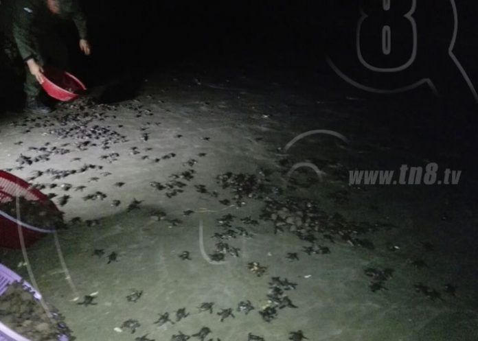 Esto forma parte del trabajo de apoyo que el Ejército brinda a las instituciones que se encargan de velar por el cuido y protección de estas especies, consideradas en peligro de extinción. La reserva de playa es uno de los tres lugares de anidación que tiene Nicaragua y a nivel mundial una de las reservas de vida silvestre más importante.