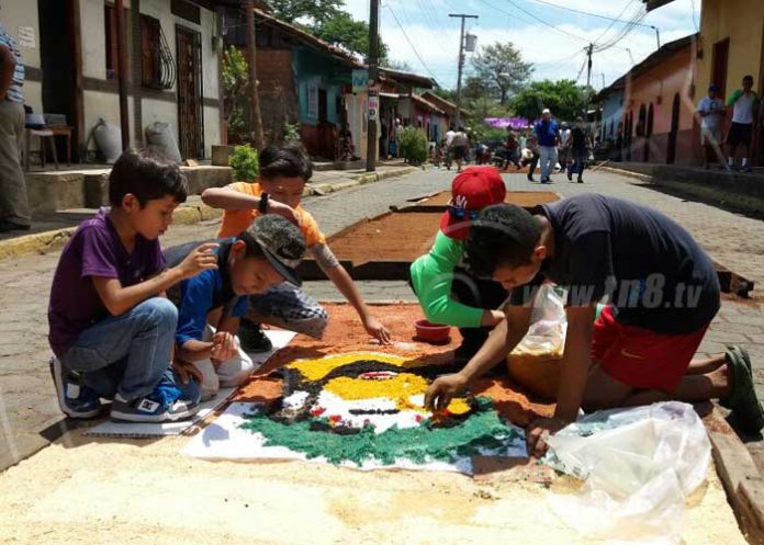 Desde muy tempranas horas de este viernes santo en León, al occidente de Nicaragua, se preparan alfombras pasionarias hechas de aserrín, una tradición que cumple 100 años de celebrarse en la famosa Calle de las Alfombras ubicada en Sutiaba.