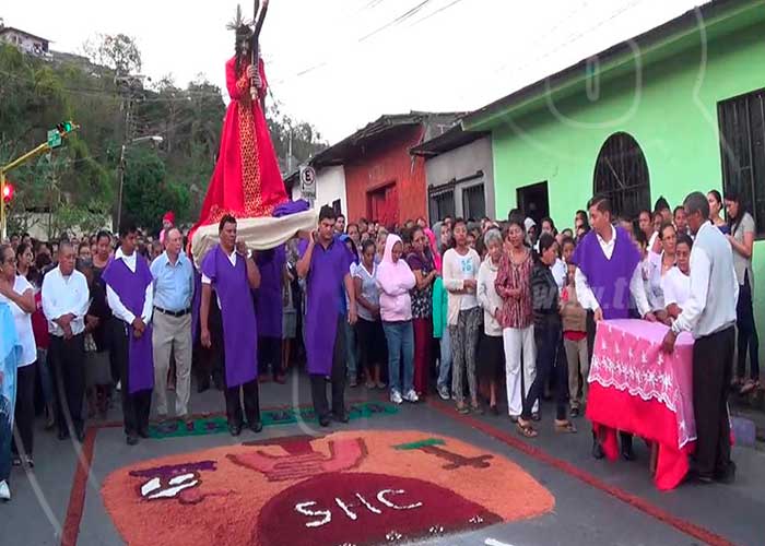 Cientos de feligreses del Municipio de Boaco, participan este viernes santo en el último víacrucis de semana santa, donde se representó cada una de las estaciones que sufrió nuestro señor Jesucristo, hasta llegar al calvario con unas adornadas y coloridas alfombras.