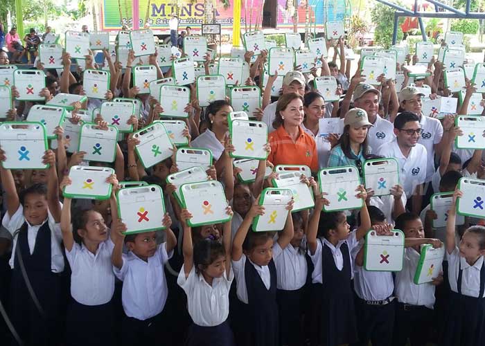 Con una actividad en el parque municipal de Nueva Guinea, en Nicaragua, recibieron computadoras "XO" estudiantes del Colegio Emmanuel Mongalo y Rubio de parte de la Fundación Zamora Terán, haciendo presencia este programa en diferentes municipios y departamentos de todo el país.