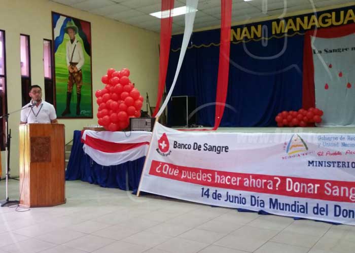 En el auditorio de la Facultad Regional de la UNAN-Managua, se llevó a cabo el acto de celebración del Día Internacional del Donante Voluntario de Sangre con la participación de instituciones como la FAREM, UNI, UCATSE y UCAN, además de la Escuela Nacional de Adiestramiento Básico de Infantería (ENABI) fábricas tabacaleras y otras.