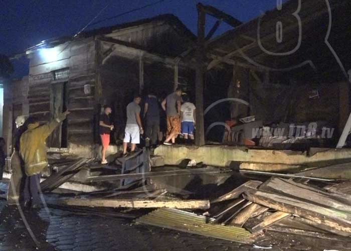 La parte frontal de una casa de tabla colapsó la noche de este martes, en el barrio Guadalupe, en la ciudad de Chinandega, producto de una tormenta acompañada de fuertes vientos.