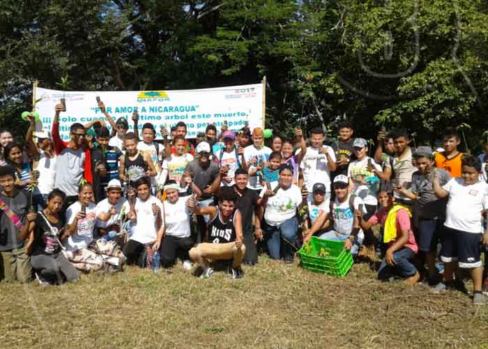 A través de la campaña "adoptar un árbol como un miembro más de la familia", más de 600 jóvenes participaron en el lanzamiento de la Cruzada Nacional de Reforestación en la finca Toro Blanco, una zona que resguarda el bosque natural donde se unen los ramales de los ríos A-Cinco y Atoya, en El Viejo – Chinandega.