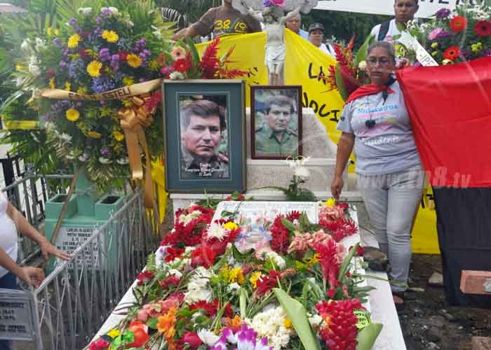 Aquí rindieron homenaje a quien identificaron como un hombre humilde y de principios revolucionarios muy arraigados, entonaron el himno nacional, además de canciones revolucionarias para evocar luego aquellas epopeyas vividas en septiembre de 1978 y abril y junio de 1979, cuando derrocaron a la Guardia Nacional.