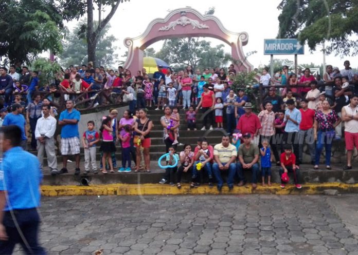 En el desfile que salió desde la casa materna hasta el parque central, participó una comparsa compuesta por hombres y mujeres que al ritmo de la banda musical realizaron un espectáculo por las calles de este pueblo y al final realzaron una presentación con acrobacia.
