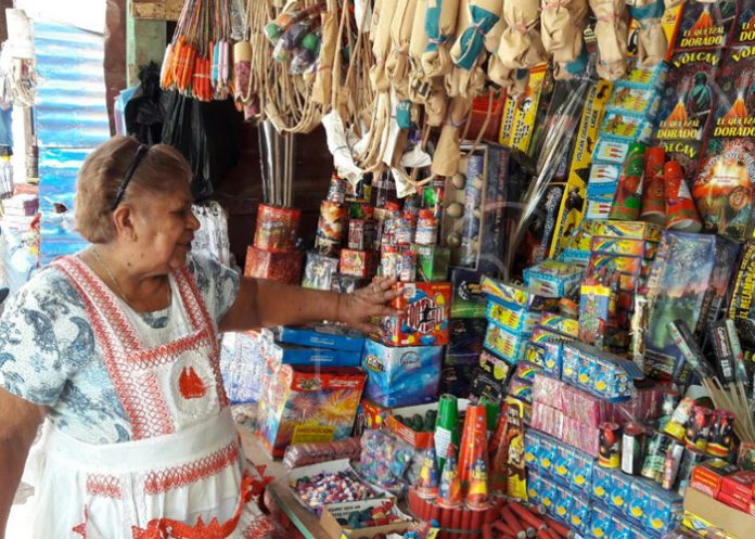"Aquí ofrecemos cachinflines, sarta, candela romana, luces chinas, caramelitos, todo eso. Estamos en la avenida Pedro Aráuz Palacios esperamos que vengan a comprar la pólvora. Tenemos, cohetes, bombas, morteros, todo lo que ustedes buscan", agregó doña Bertha Soto, con más de 40 años dedicada a la venta de pólvora.