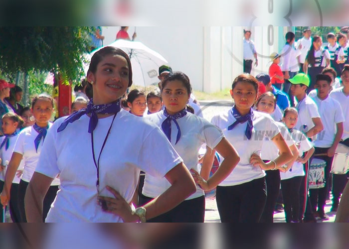 Después del acto, por las principales calles desfilaron cientos de estudiantes de los centros educativos Rubén Darío, América Latina, Monte Sión, San Andrés y Padre Rafael María Fabretto todos estudiantes de la educación primaria.