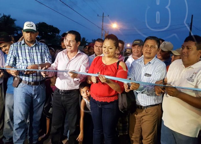 Autoridades del Ministerio de Transporte e Infraestructura, los candidatos a la municipalidad por el FSLN y la población inauguraron 1.8 kilómetro de la calle principal de Mulukukú.