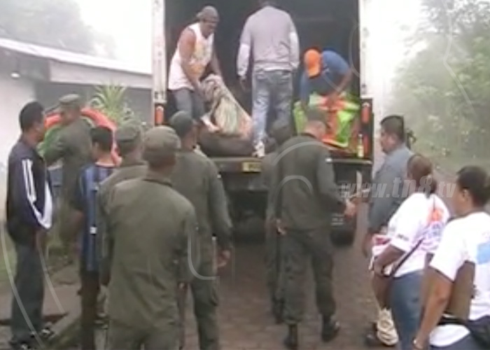 Para hacer efectiva la respuesta inmediata del Gobierno Sandinista se dispusieron de un camión pesado y más de 10 miembros de la Defensa Civil del Ejército de Nicaragua. "Nosotros les dijimos que tenían que tener fe y confianza en Dios y en el Buen Gobierno que nunca los iba a dejar solos, y aquí estamos entregando esa ayuda solidaria", expresó dra. Rivera, representante del Gobierno.