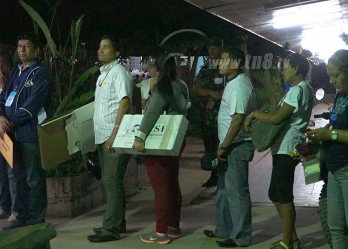 Luego de que se llevó acabo el cierre en las JRV de Nueva Guinea, Nicaragua, ahora cada una llega al centro de computo para conocer el resultado.
