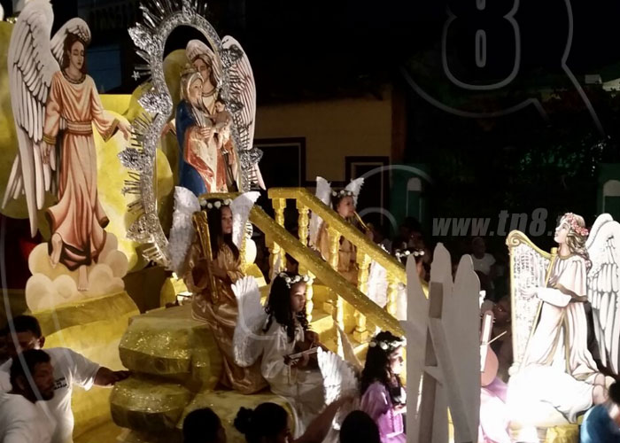 Después de la eucaristía y dedicarle la actividad a la madre del cielo, la imagen salió en procesión a la catedral de Granada, donde fue recibida con mucha alegría y con un derroche de fuegos pirotécnicos que alumbraron el cielo.