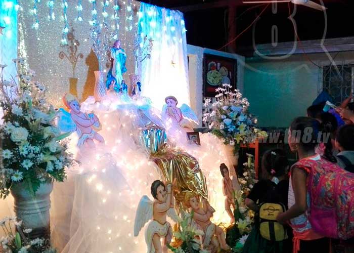De manera minuciosa los altares fueron preparados en los hogares de Masaya, cada detalle fue hecho con cariño para la Madre de Dios, patrona de Nicaragua, familias que se han preparado para este día desde meses atrás para poder recibir a los devotos que peregrinan con la fe por las calles, a quienes se les entrega, cajetas, nacatamales, indio viejo, naranja, bananos, entre otros productos tradicionales.