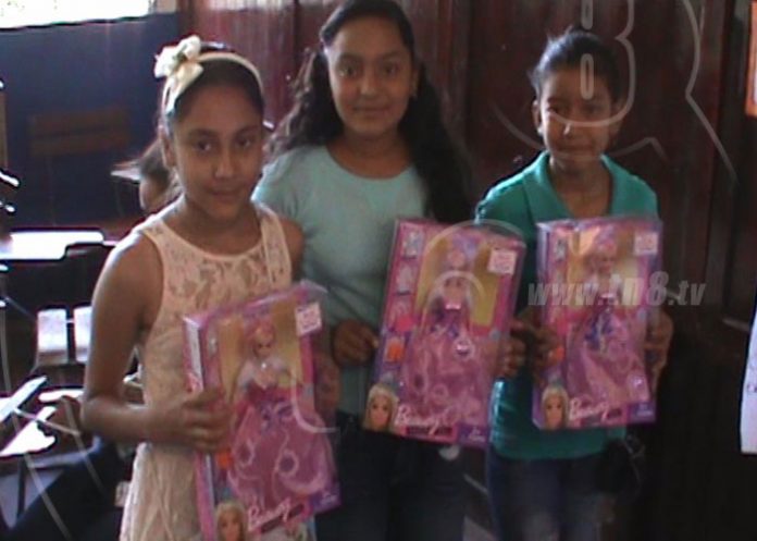 En la escuela César Augusto Salinas Pinel de este municipio, los estudiantes de primaria junto a sus padres recibieron los juguetes que el buen Gobierno Sandinista distribuye en todos los departamentos de Nicaragua para llevar alegría a los mimados de la Revolución.