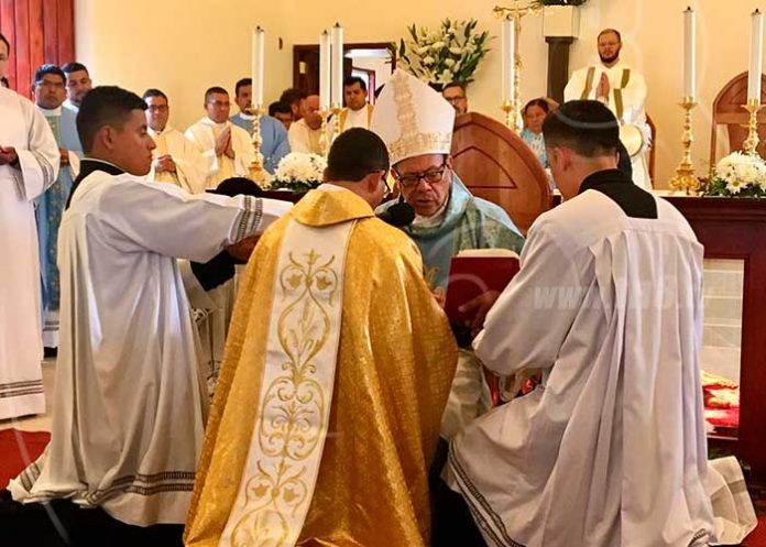 Este sábado se llevó a cabo en la Iglesia San Pedro de Mozonte, departamento de Nueva Segovia la ordenación de Alquiles Martínez como Presbítero, junto a Alonso Palacios Espinoza y Fray Exequiel López López, como los Diáconos por la imposición de manos y oración del Obispo de la Diócesis de Estelí Juan Abelardo Mata, en una misa que duró alrededor de 3 horas.
